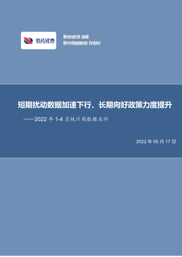【信达证券】【20220517】房地产行业2022年1_4月统计局数据点评:短期扰动数据加速下行,长期向好政策力度提升-15页