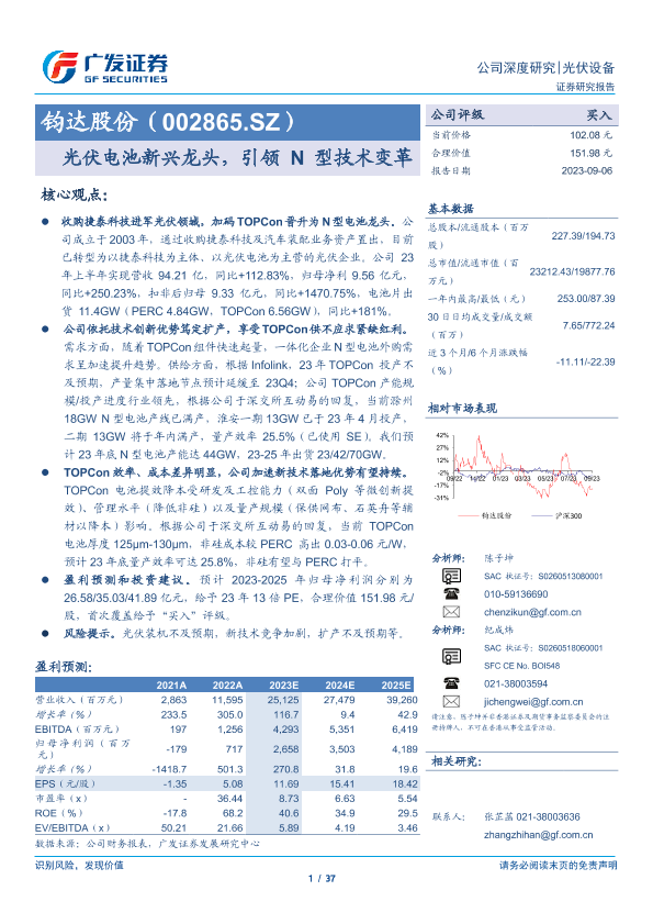 【广发证券】【20230906】钧达股份(002865.SZ)光伏电池新兴龙头,引领N型技术变革-37页