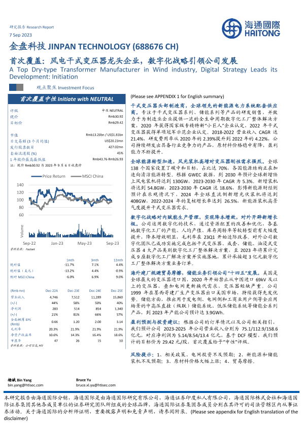 【海通国际】【20230907】首次覆盖:风电干式变压器龙头企业,数字化战略引领公司发展-24页
