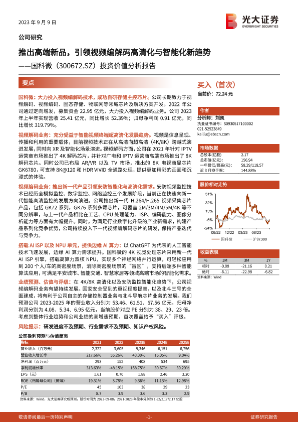 【光大证券】【20230909】推出高端新品,引领视频编解码高清化与智能化新趋势——国科微(300672.SZ)投资价值分析报告-31页