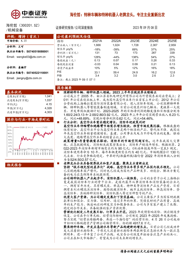 【中泰证券】【20230908】海伦哲:特种车辆和特种机器人老牌龙头,专注主业重新出发-23页