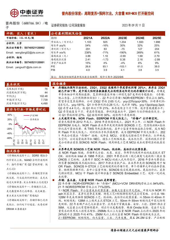 【中泰证券】【20230911】普冉股份深度:周期复苏+强阿尔法,大容量NOR+MCU打开新空间-43页