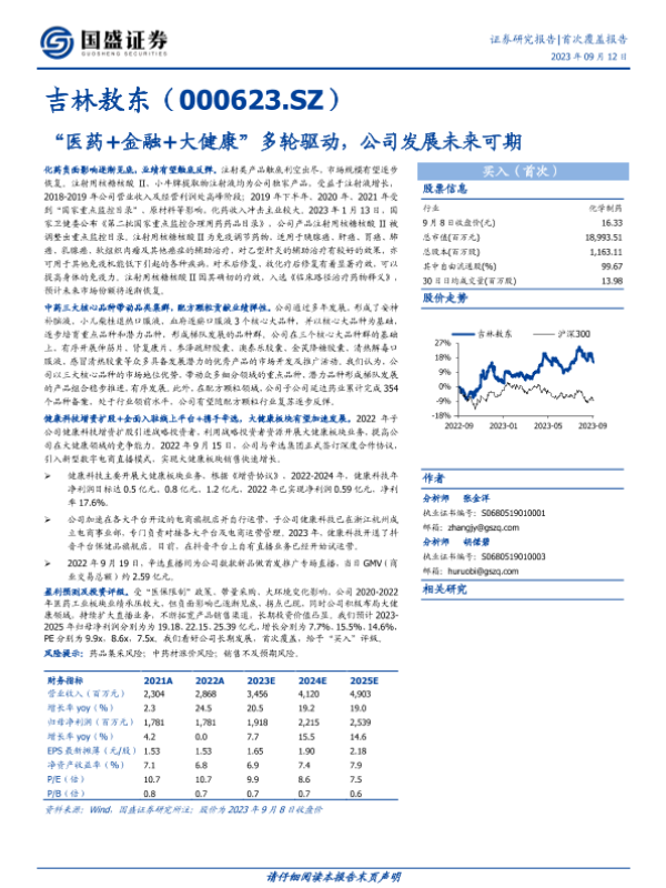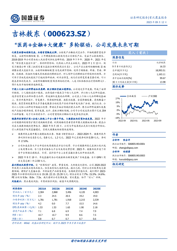【国盛证券】【20230912】吉林敖东-000623.SZ-“医药+金融+大健康”多轮驱动,公司发展未来可期-25页