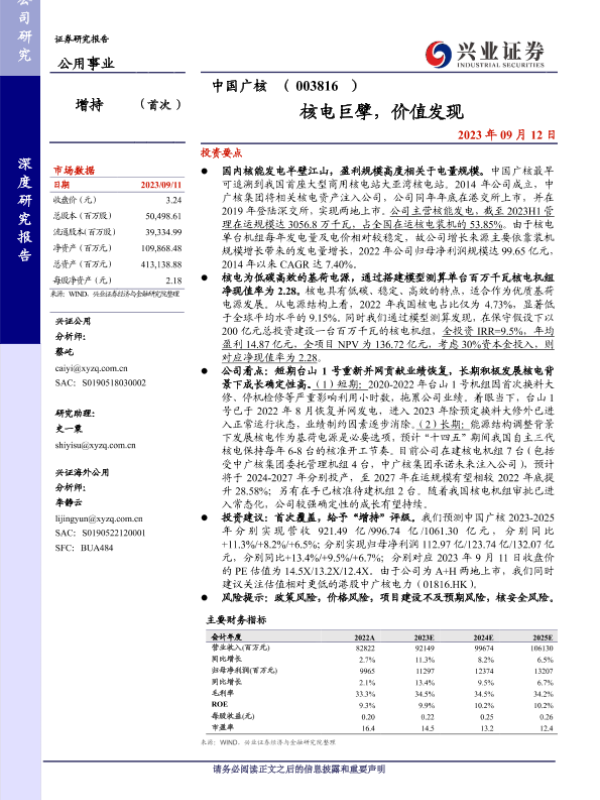 【兴业证券】【20230912】核电巨擘,价值发现-25页