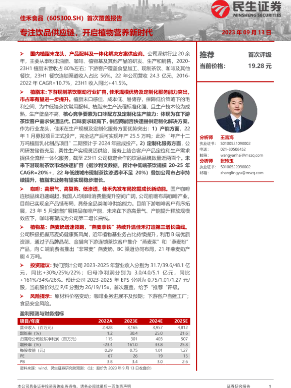 【民生证券】【20230913】佳禾食品-605300.SH-首次覆盖报告:专注饮品供应链,开启植物营养新时代-42页