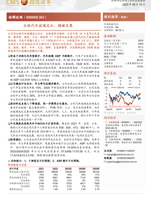 【海通证券】【20230913】20230913-招商证券-福耀玻璃-600660.SH-全球汽车玻璃龙头,稳健发展-21页