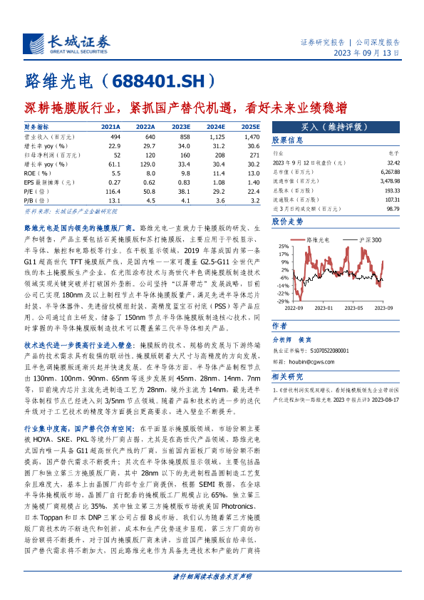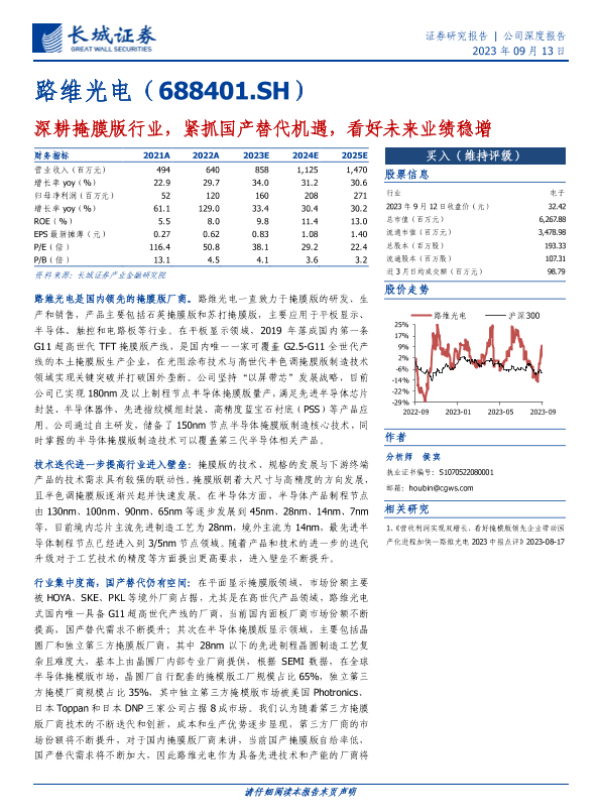 【长城证券】【20230913】深耕掩膜版行业,紧抓国产替代机遇,看好未来业绩稳增-22页