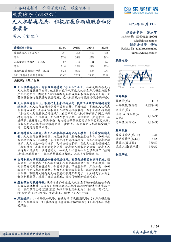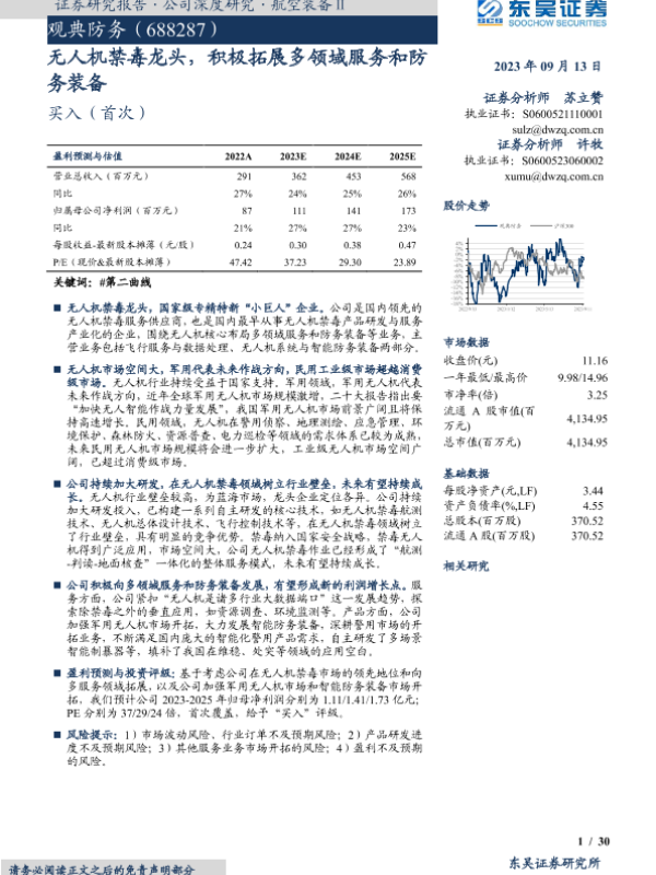 【东吴证券】【20230913】观典防务-688287.SH-无人机禁毒龙头,积极拓展多领域服务和防务装备-30页