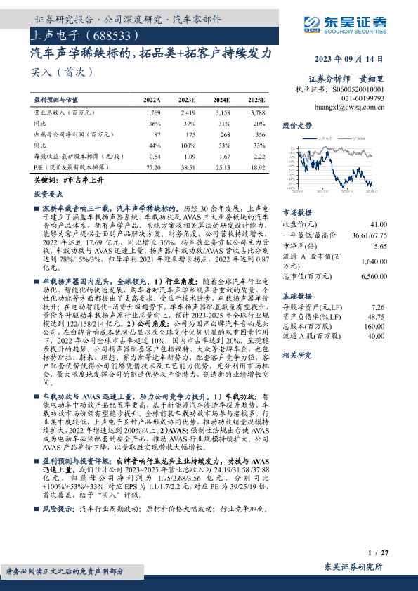 【东吴证券】【20230914】上声电子(688533)汽车声学稀缺标的,拓品类+拓客户持续发力-27页