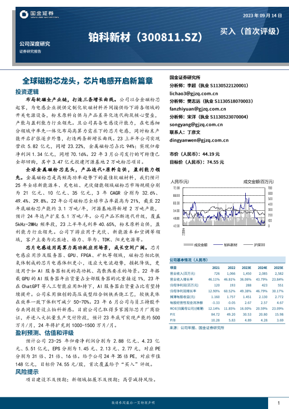 【国金证券】【20230914】国金证券-铂科新材-公司深度研究:全球磁粉芯龙头,芯片电感开启新篇章-25页