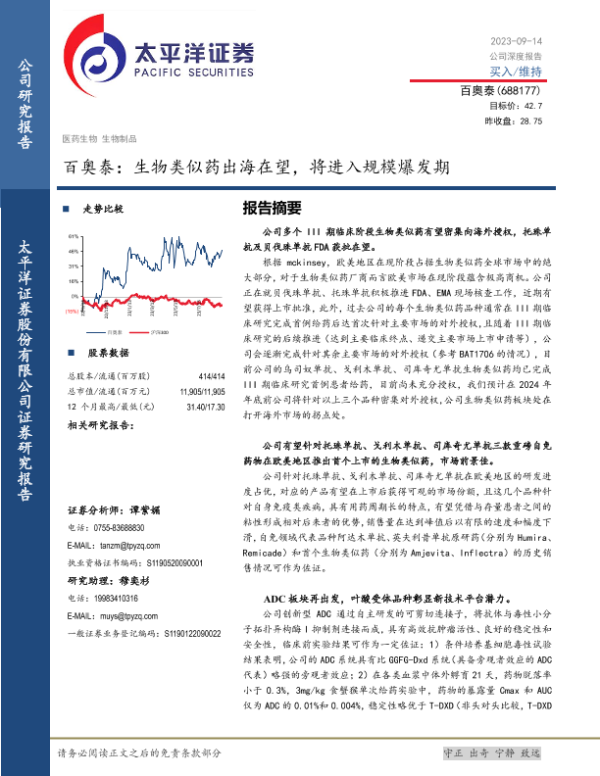【太平洋证券】【20230914】百奥泰:生物类似药出海在望,将进入规模爆发期-32页