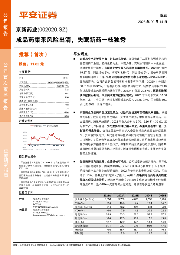 京新药业 医药 失眠新药 成品药集采 财务分析
