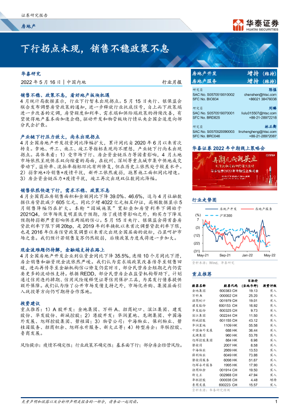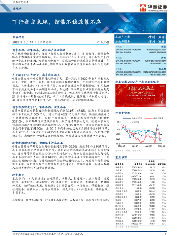 【华泰证券】【20220516】房地产行业月报:下行拐点未现,销售不稳政策不息-20页