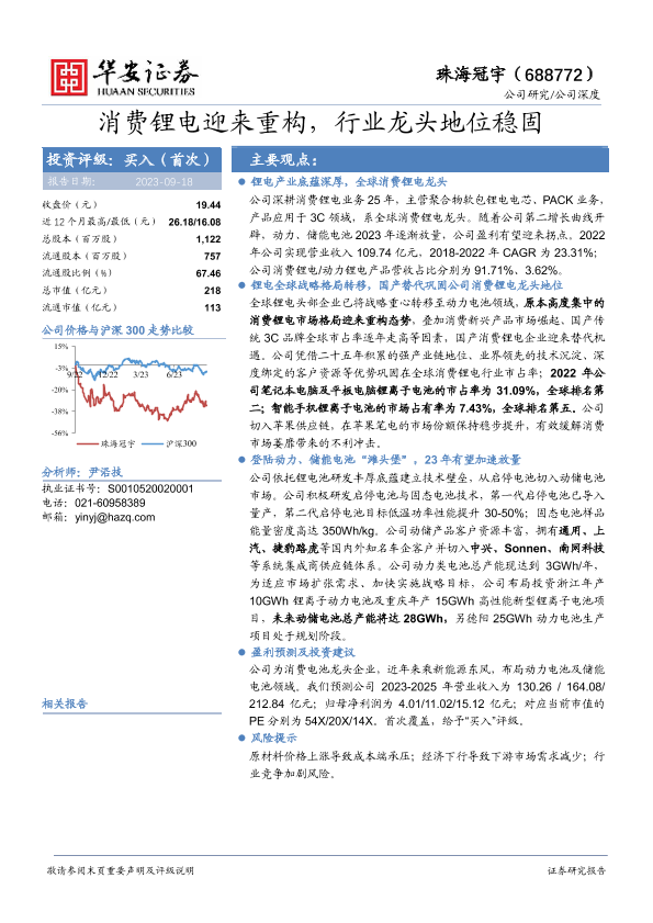 【华安证券】【20230918】消费锂电迎来重构,行业龙头地位稳固-25页