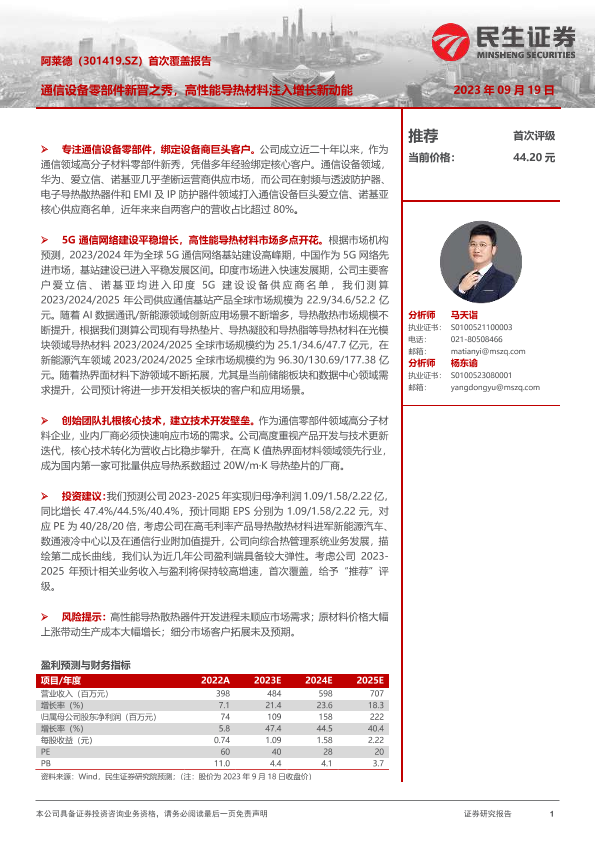 【民生证券】【20230919】阿莱德(301419.SZ)首次覆盖报告:通信设备零部件新晋之秀,高性能导热材料注入增长新动能-37页