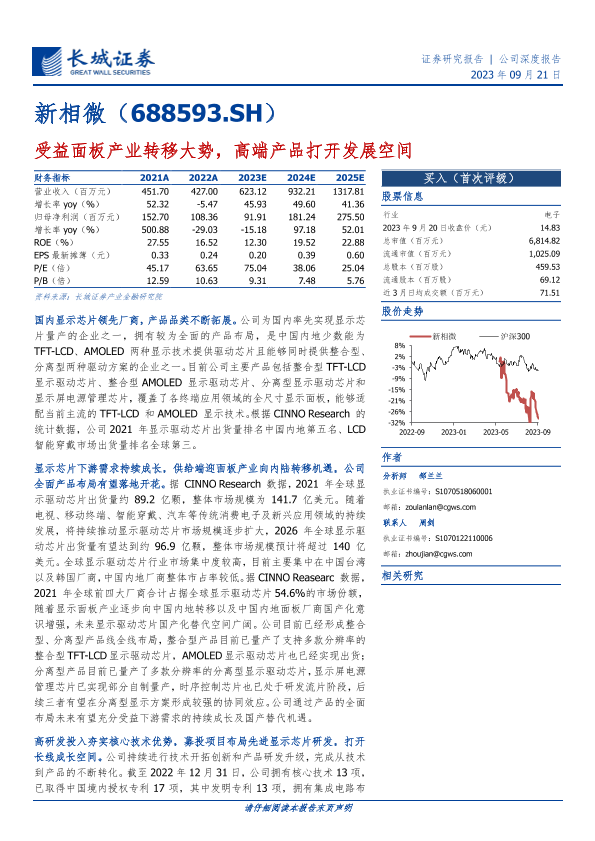 【长城证券】【20230921】新相微-受益面板产业转移大势,高端产品打开发展空间-34页