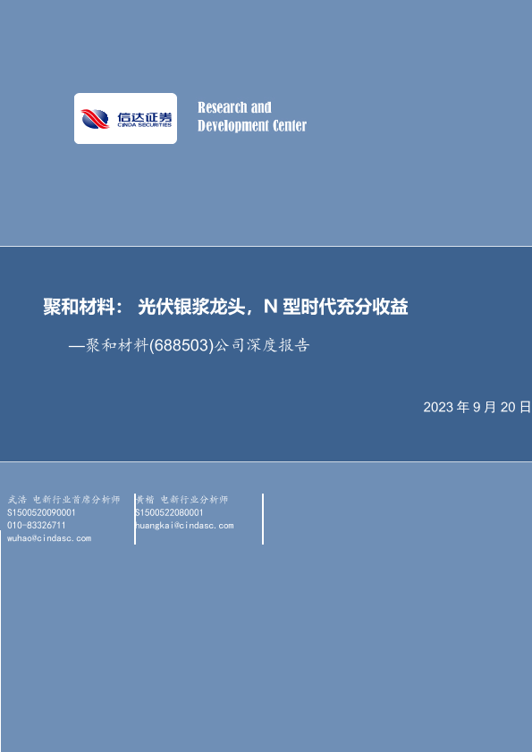 【信达证券】【20230920】聚和材料:光伏银浆龙头,N型时代充分收益-31页