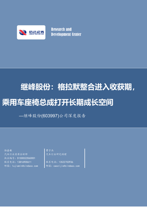 【信达证券】【20230921】继峰股份:格拉默整合进入收获期,乘用车座椅总成打开长期成长空间-44页