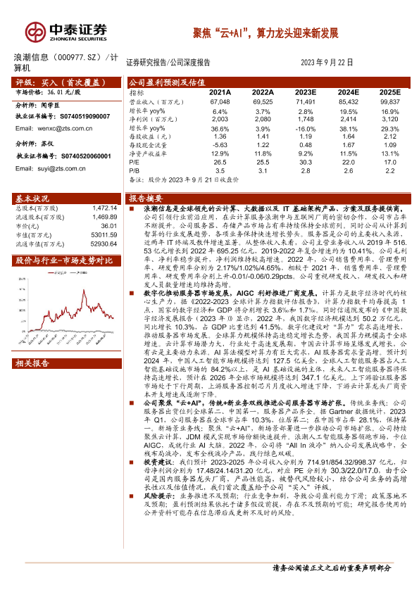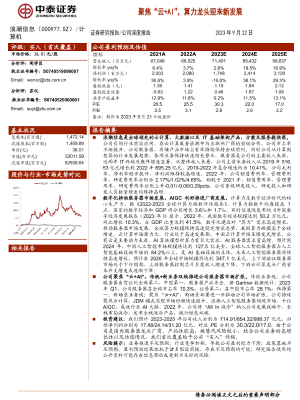 【中泰证券】【20230922】聚焦“云+AI”,算力龙头迎来新发展-28页