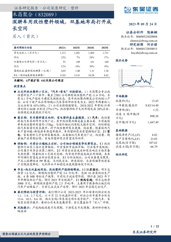 【东吴证券】【20230924】深耕车用改性塑料领域,双基地布局打开成长空间-22页