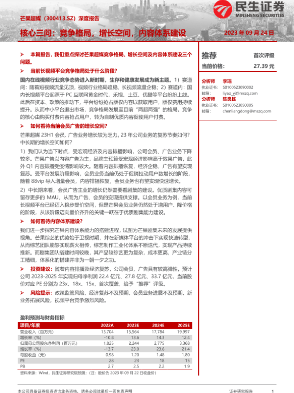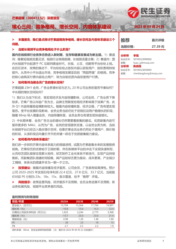 【民生证券】【20230924】20230924-民生证券-芒果超媒-300413.SZ-深度报告:核心三问:竞争格局,增长空间,内容体系建设-48页