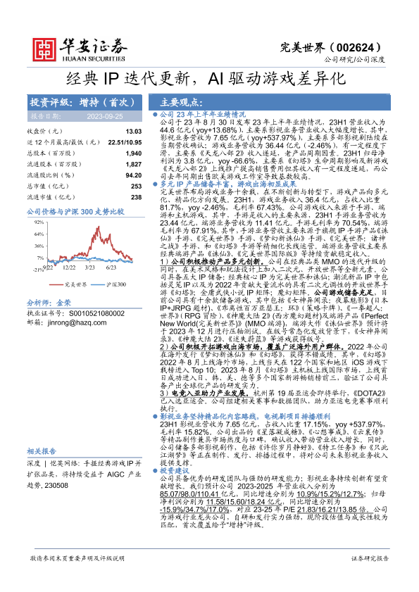 【华安证券】【20230925】经典IP迭代更新,AI驱动游戏差异化-27页