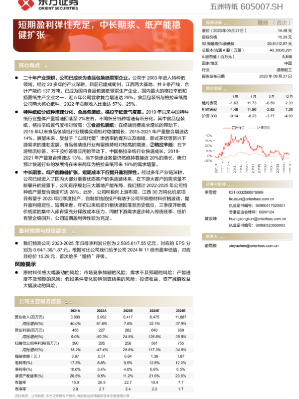 【东方证券】【20230927】五洲特纸-短期盈利弹性充足,中长期浆、纸产能稳健扩张-23页