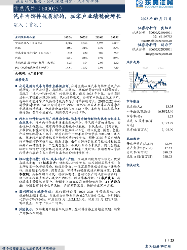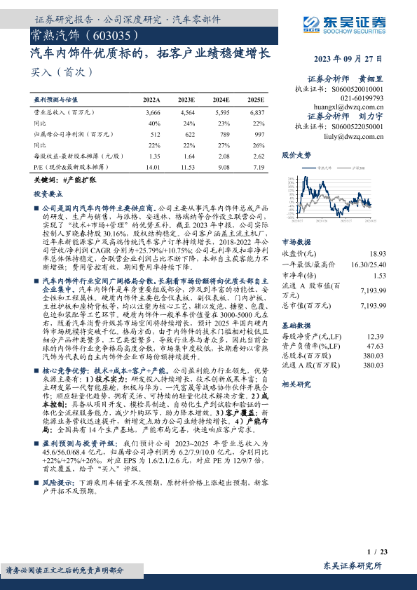 【东吴证券】【20230927】20230927-东吴证券-常熟汽饰-603035.SH-汽车内饰件优质标的,拓客户业绩稳健增长-23页