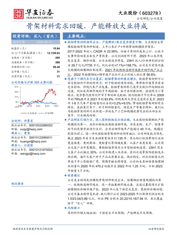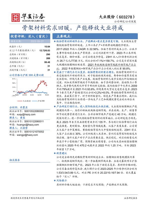 【华安证券】【20230927】骨架材料需求回暖,产能释放大业将成-26页