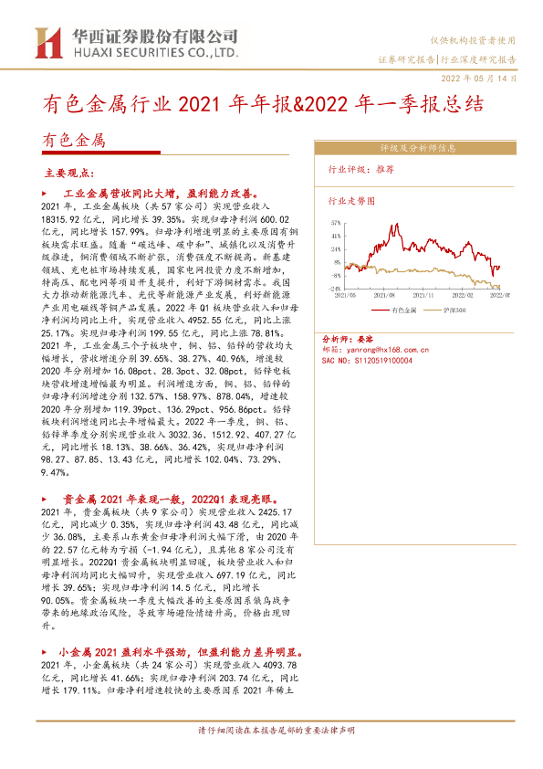 【华西证券】【20220514】有色金属行业2021年年报&2022年一季报总结-29页