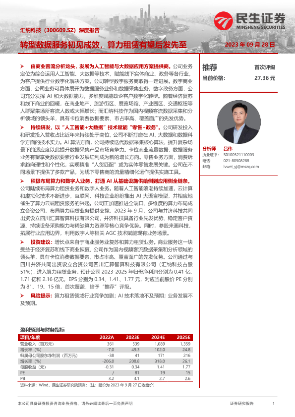 【民生证券】【20230928】20230928-民生证券-汇纳科技-300609.SZ-深度报告:转型数据服务初见成效,算力租赁有望后发先至-26页