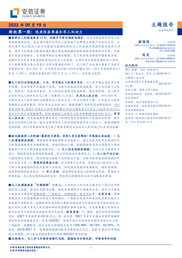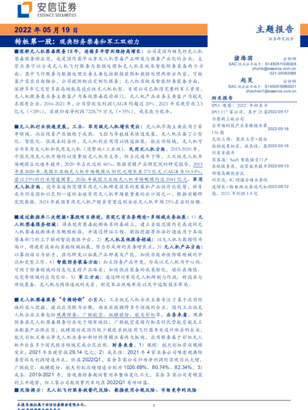 【安信证券】【20220519】无人机行业转板第一股:观典防务禁毒和军工双动力-34页