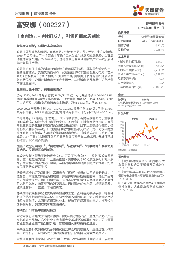 【天风证券】【20230928】富安娜-丰富创造力+持续研发力,引领睡眠家居潮流-21页