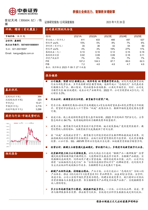 【中泰证券】【20230928】20230928-中泰证券-世纪天鸿-300654.SZ-教辅主业焕活力,智慧教育谱新章-24页