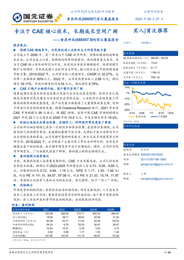 【国元证券】【20230927】专注于CAE核心技术,长期成长空间广阔——索辰科技(688507.SH)首次覆盖报告-34页