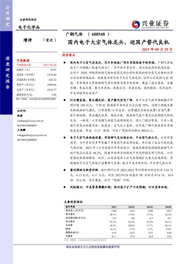 【兴业证券】【20230929】国内电子大宗气体龙头,迎国产替代良机-34页