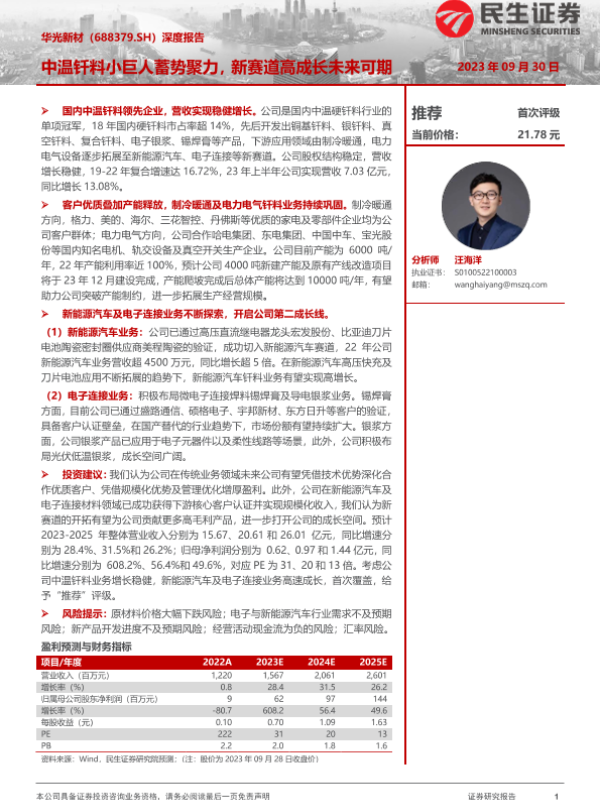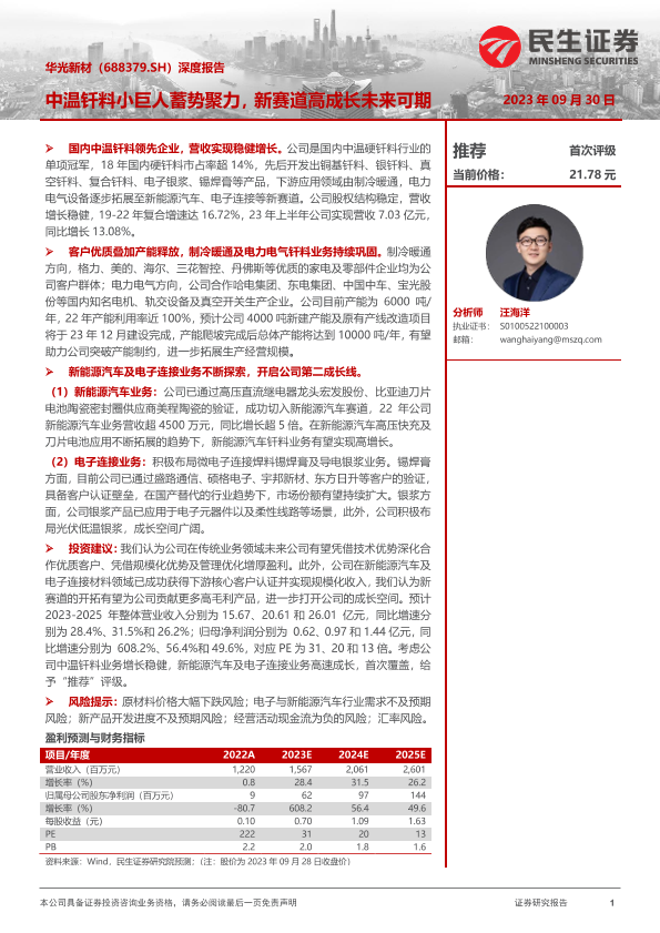 【民生证券】【20230930】20230930-民生证券-华光新材-688379.SH-深度报告:中温钎料小巨人蓄势聚力,新赛道高成长未来可期-32页