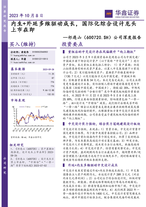 【华鑫证券】【20231008】20231008-华鑫证券-祁连山-600720.SH-公司深度报告:内生+外延多维驱动成长,国际化综合设计龙头上市在即-25页