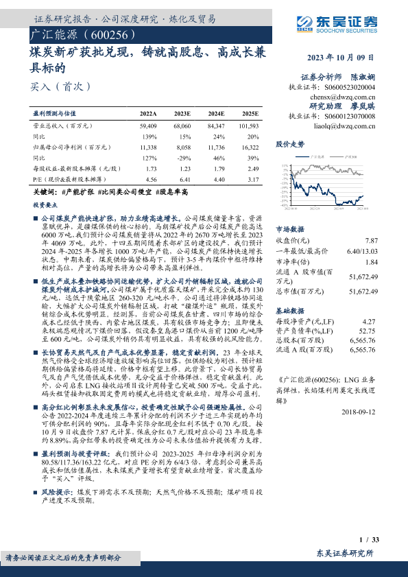 【东吴证券】【20231009】广汇能源:煤炭新矿获批兑现,铸就高股息、高成长兼具标的-33页