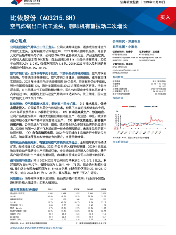 【国信证券】【20231010】比依股份:空气炸锅出口代工龙头,咖啡机有望拉动二次增长-44页
