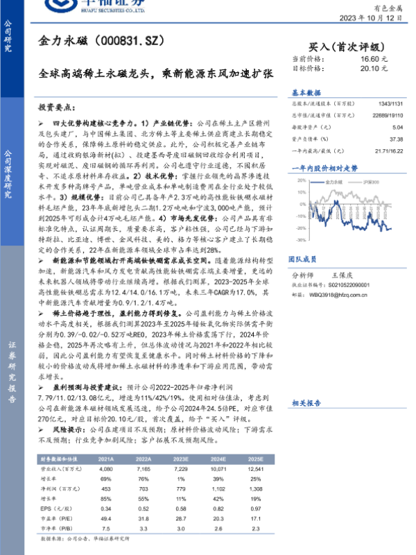 【华福证券】【20231012】全球高端稀土永磁龙头,乘新能源东风加速扩张-33页
