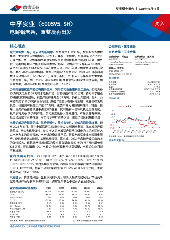 【国信证券】【20231012】中孚实业(600595.SH)电解铝老兵,重整后再出发-36页