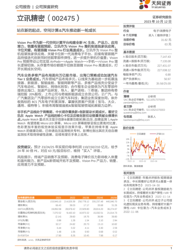 【天风证券】【20231012】立讯精密-站在新的起点,空间计算&汽车推动新一轮成长-32页