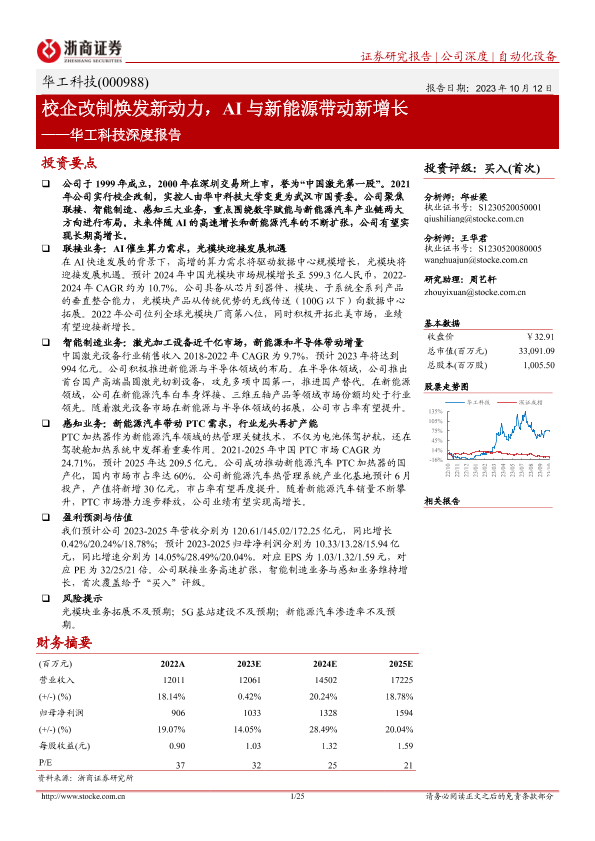 【浙商证券】【20231012】华工科技深度报告:校企改制焕发新动力,AI与新能源带动新增长-25页