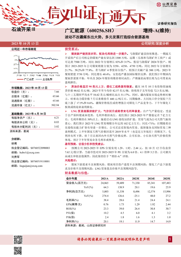 LNG贸易 广汇能源 煤化工 煤炭产能 综合能源基地