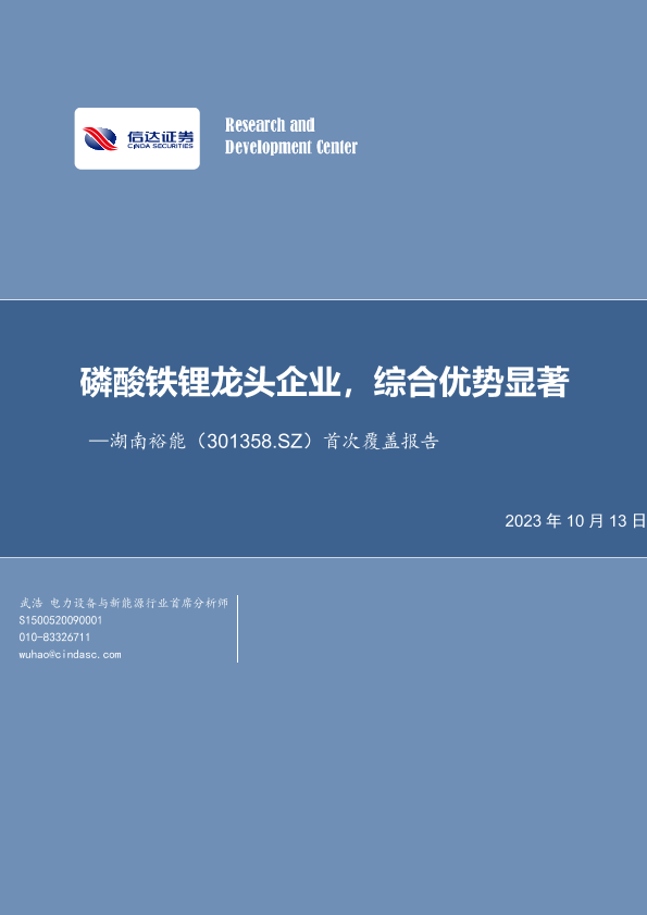 【信达证券】【20231013】20231013-信达证券-湖南裕能-301358.SZ-首次覆盖报告:磷酸铁锂龙头企业,综合优势显著-34页