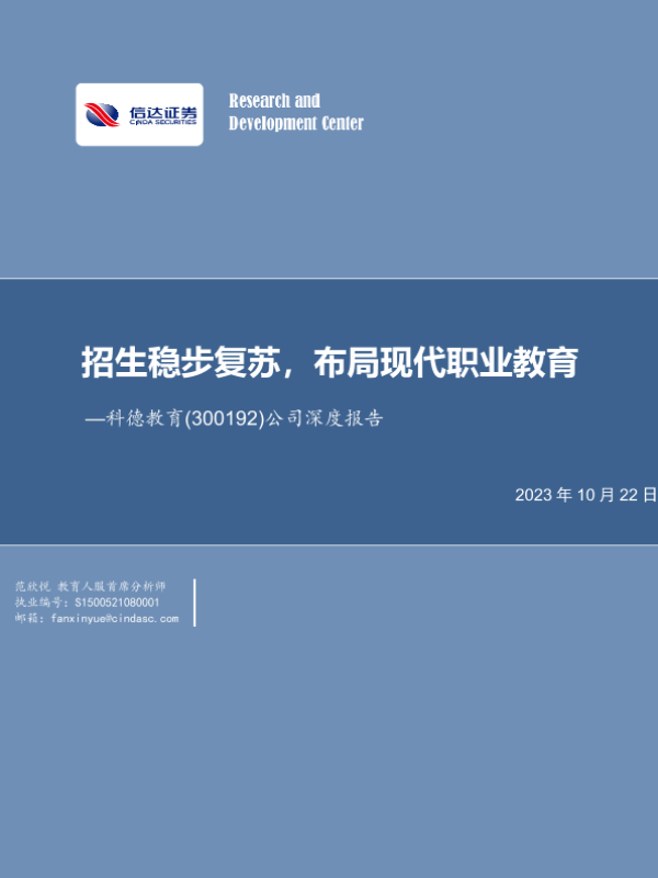 【信达证券】【20231022】20231022-信达证券-科德教育-300192.SZ-公司深度报告:招生稳步复苏,布局现代职业教育-26页