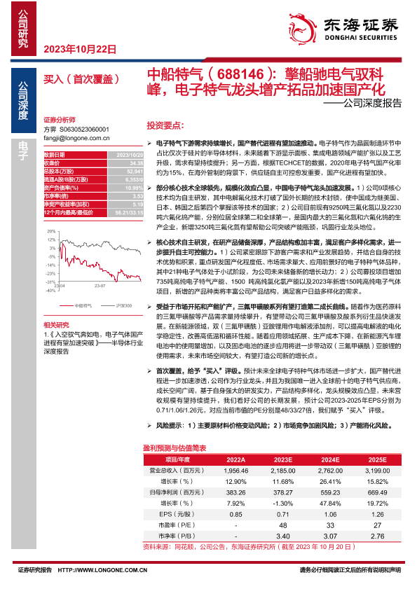 【东海证券】【20231022】中船特气(688146):擎船驰电气驭科峰,电子特气龙头增产拓品加速国产化-40页