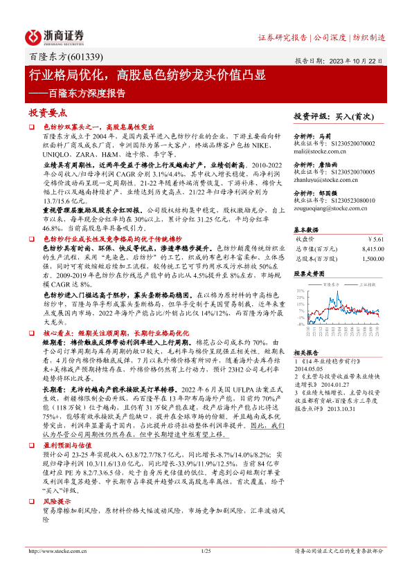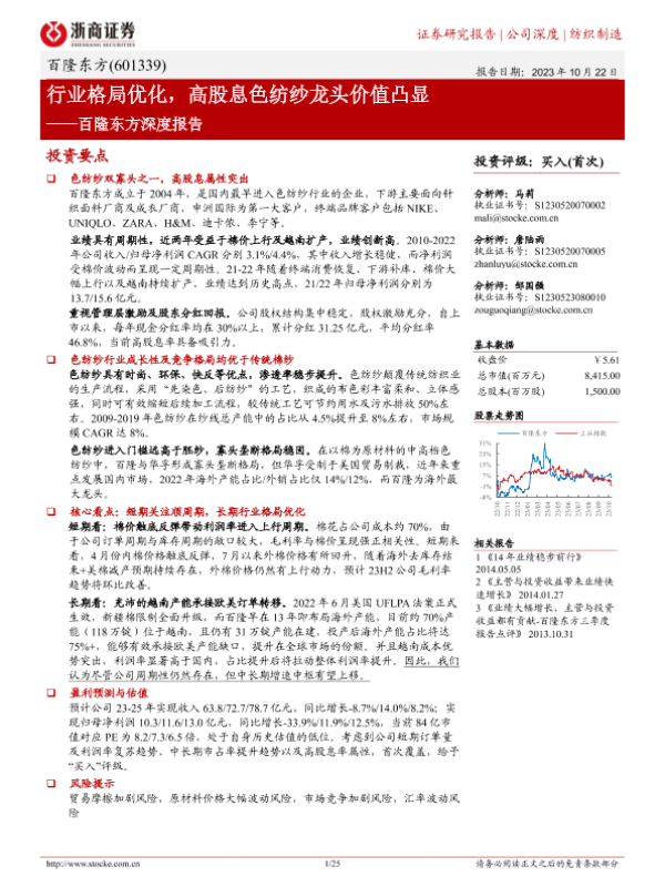 【浙商证券】【20231022】百隆东方深度报告:行业格局优化,高股息色纺纱龙头价值凸显-25页