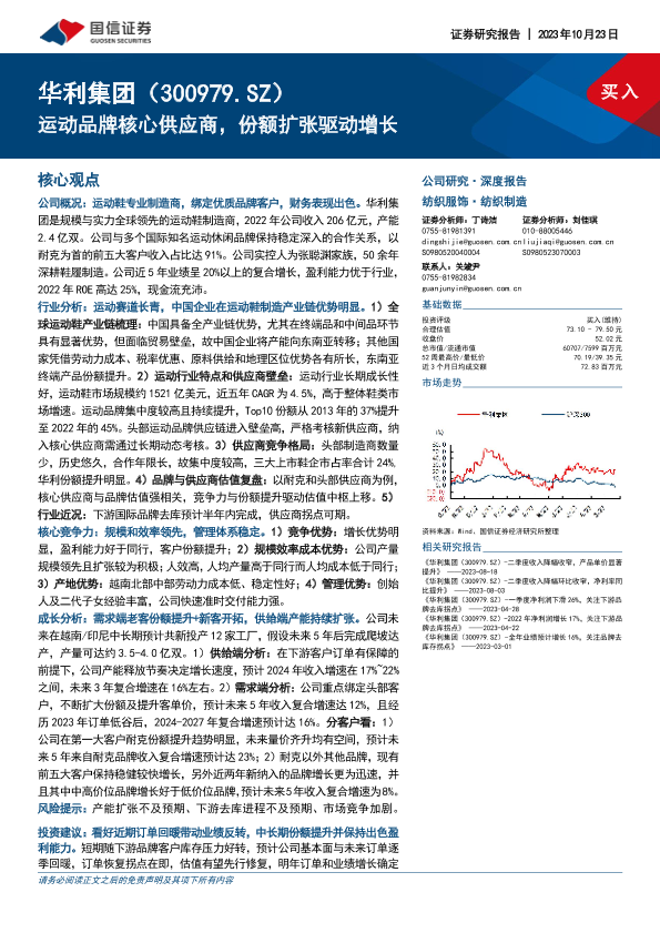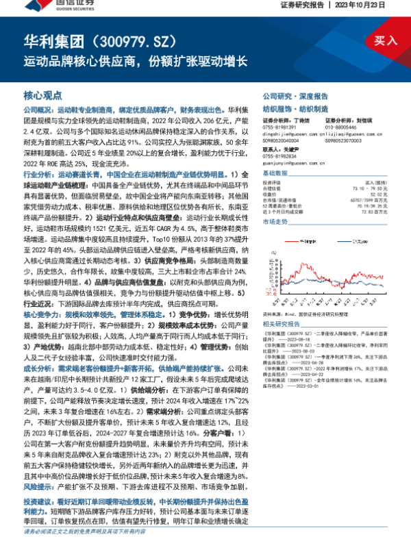 【国信证券】【20231023】华利集团(300979.SZ)-运动品牌核心供应商,份额扩张驱动增长-70页